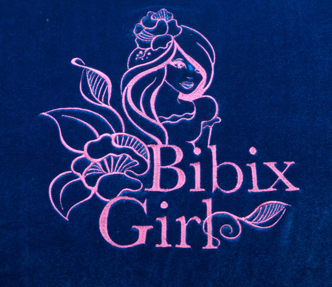 Söpö Bibix Girl prinsessa selässä. Kirjonnan valikoimassa on 19 eriväristä lankaa. Halutessaan laitamme myös kiiltävät timantit.