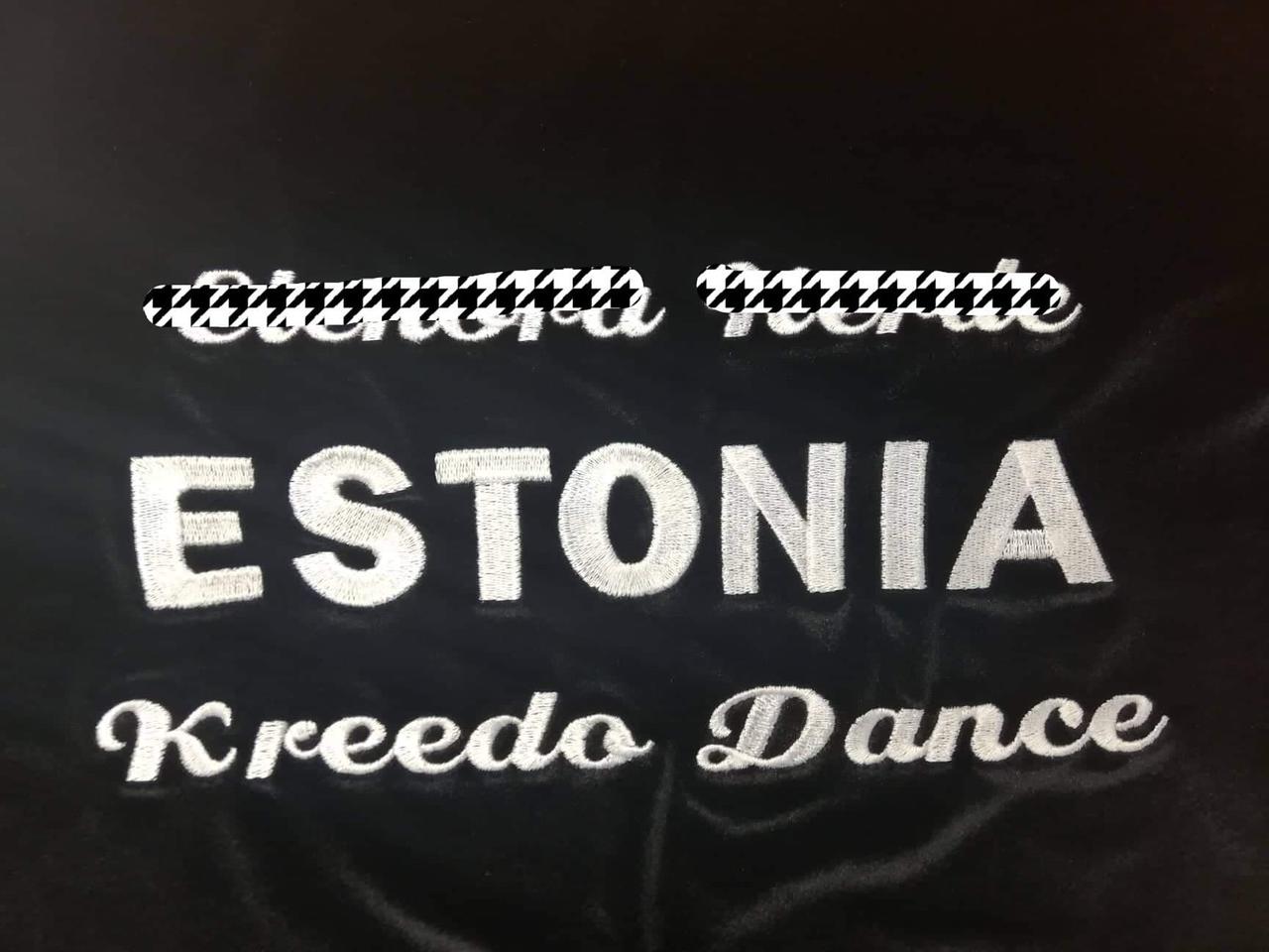 - Logo ja nimi on tikitud seljale, vasakul varrukal Eesti lipp.