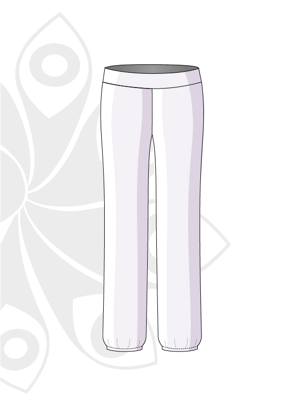 Naiste pikad püksid alt kummiga. Paraja kõrgusega värvel, mis ei ole üleliia madal. Värvli sees kumm.